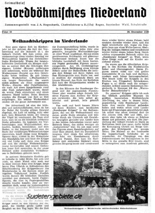 Der „Heimatbrief – Nordböhmisches Niederland“ Heimatbote für das nordböhmische Niederland erschien ab November 1950 unter der Leitung von Josef Armin Hegenbarth.