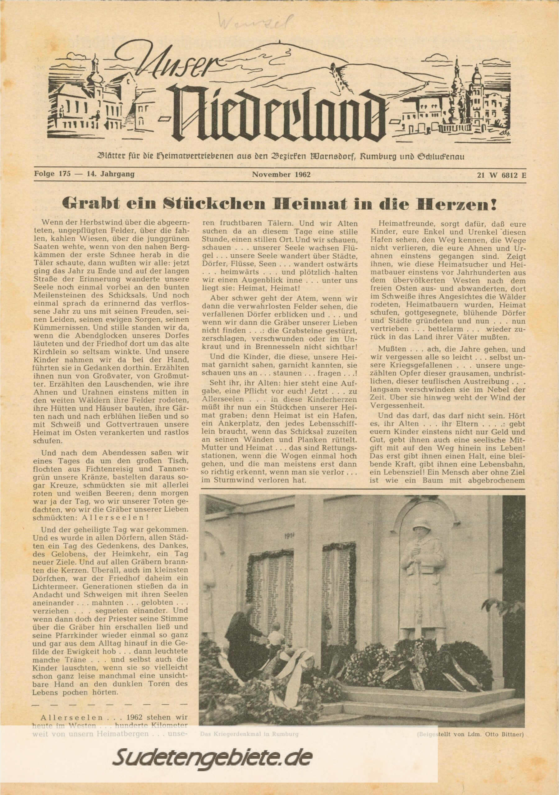„Unser Niederland“ Blätter für die heimatvertriebenen Landsleute aus den Bezirken Warnsdorf, Rumburg und Schluckenau,